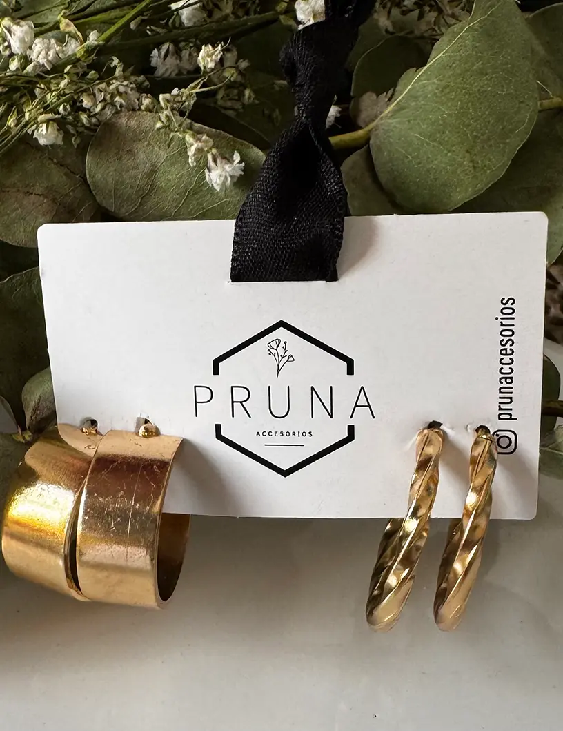 Aros set argollas planas chicas en oro.