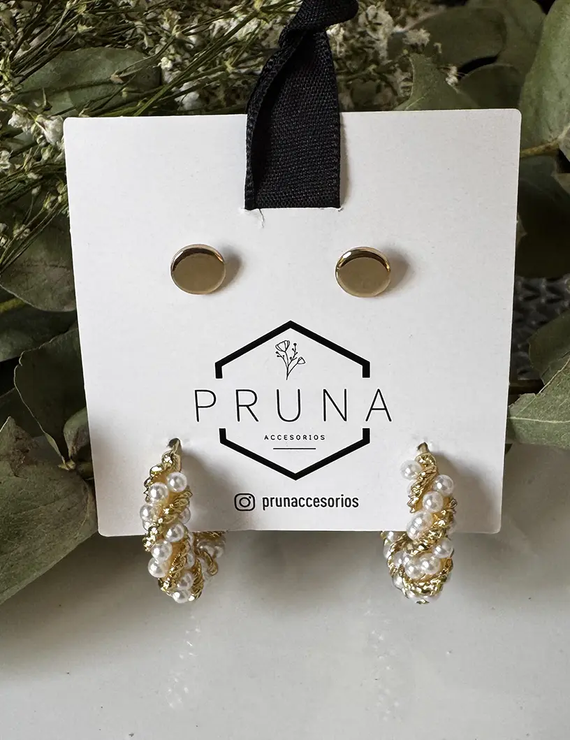 Aros Set Botón Argolla Perla Trenzada