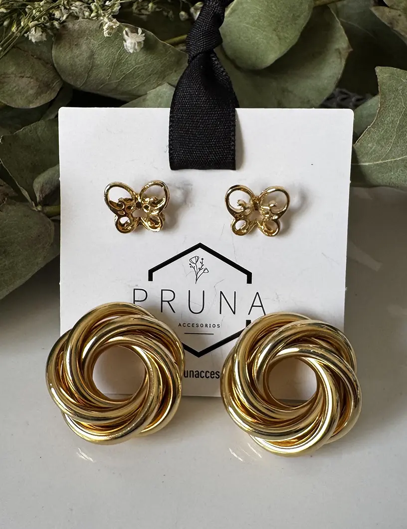 Aros set mariposa con nido en oro. Bijou de acero inoxidable, totalmente antialergicos, y excelente calidad.