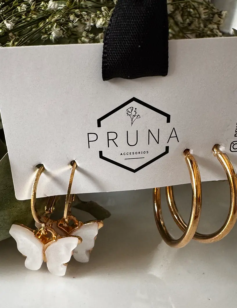 Aros set mariposas marfil con argollas lisas en oro. Bijou de acero inoxidable, totalmente antialergicos, y excelente calidad.