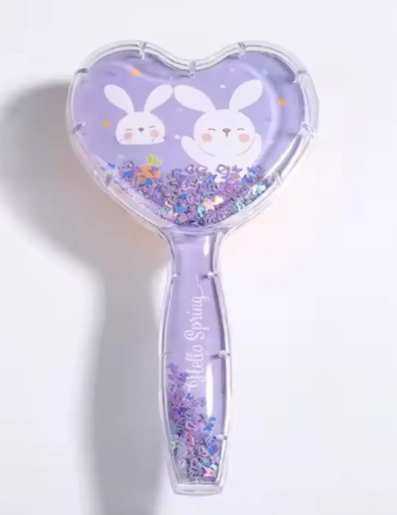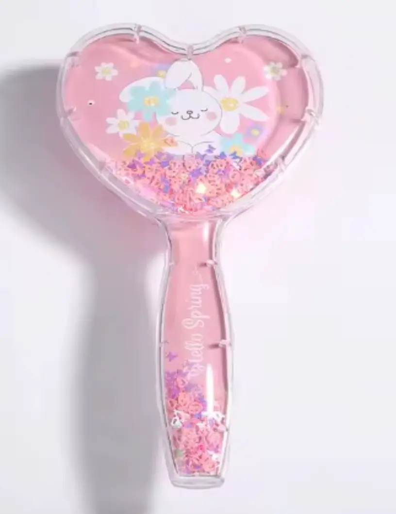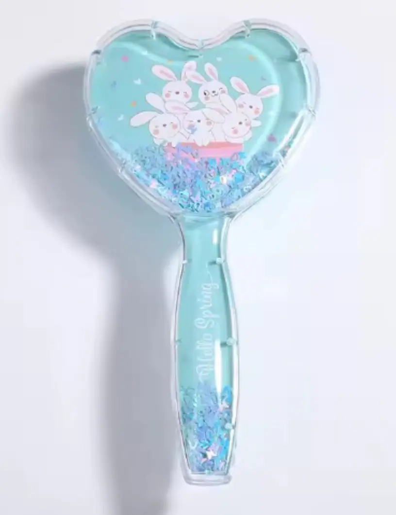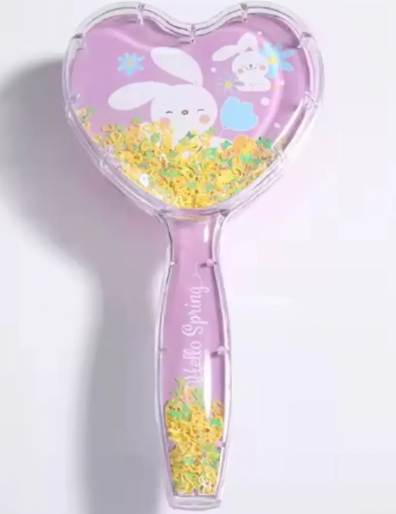 Cepillo en forma de corazón, con brillantinas móviles dentro.