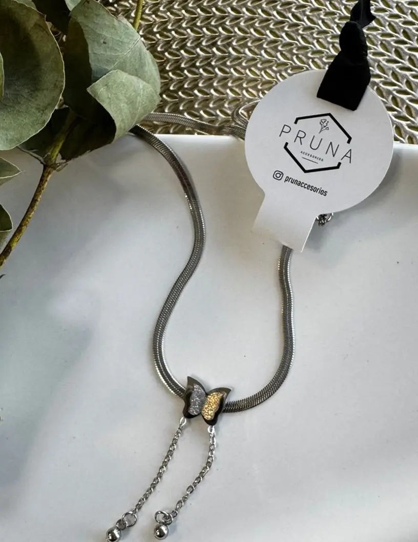 Colgante mariposa disponible en tres variantes: plata, oro y rosé.